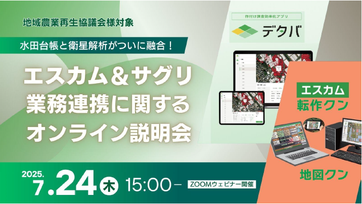 2025年7月24日(木)15:00より、サグリ株式会社との業務連携に関するオンライン説明会をZoomウェビナーにて開催いたします。